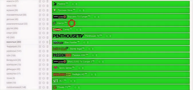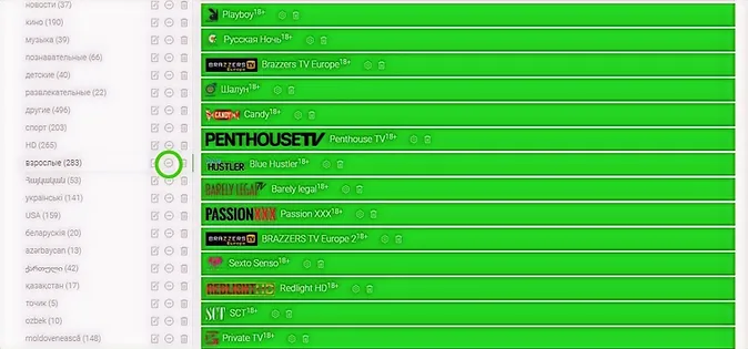 On the website ottplayer.tv in the "Playlists" section, go to the channel settings and set "Yes" adult (18+)