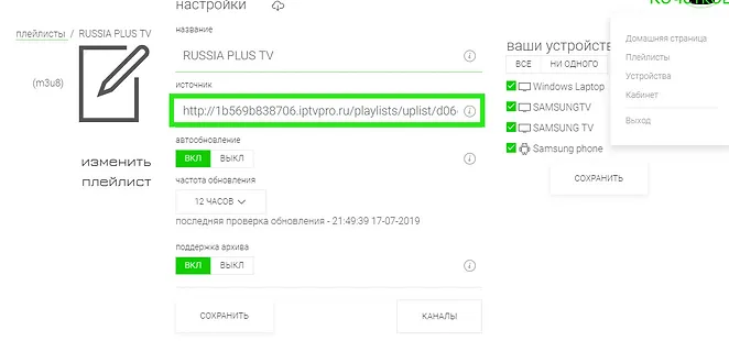 5. On which devices can I play playlist Russia Plus TV?