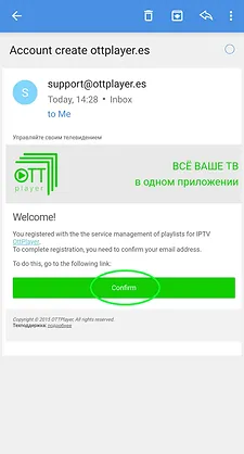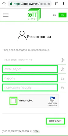 Register the Ottplayer on site ottplayer.tv with the same data with which you are registered in the "Player Registration" section.