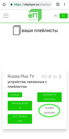On the Ottplayer’s site go to “Playlists” and select your device.